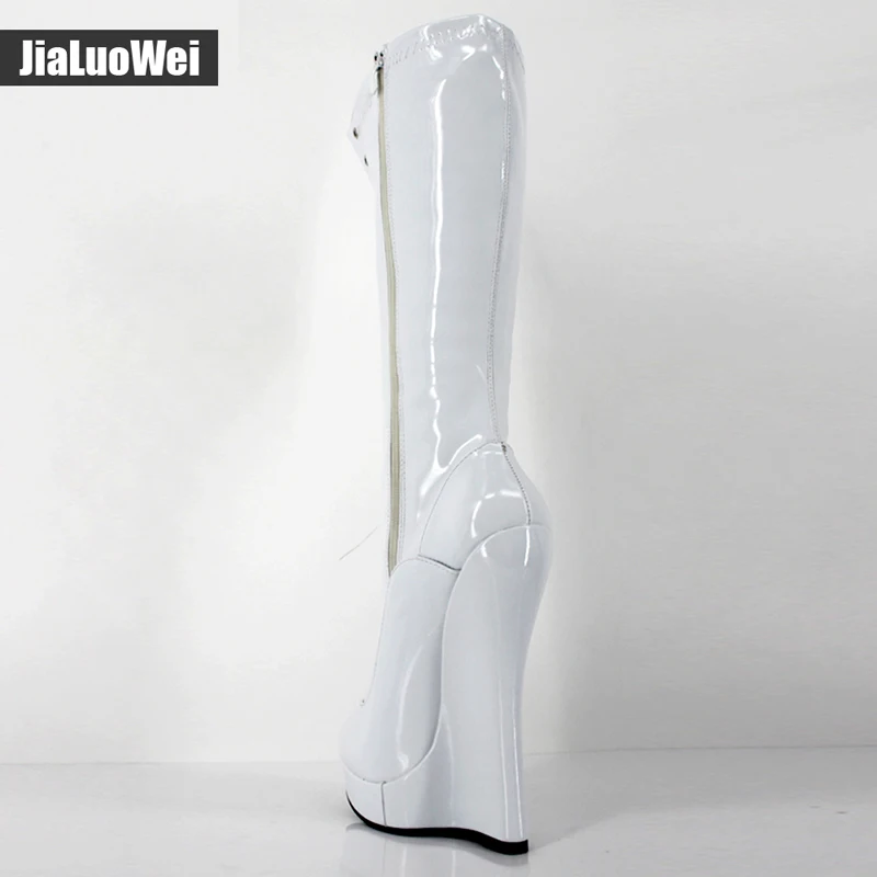 Unleash your inner diva with our 18cm (7 Inch) Extreme High Wedge Heel Platform Boots. Designed for the bold and adventurous, these sexy exotic boots blend style and functionality, making them an essential addition to your wardrobe. Whether you’re a transgender, crossdresser, or simply someone who loves to make a statement, these knee-high patent leather boots are perfect for you.