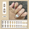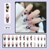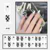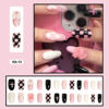 24pcs/box  Lovely Checked-pattern Press On Nails Full Cover Fake Nails With Glue Long Wearable False Nails WIth Wearing Tools