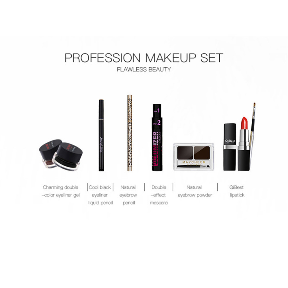 7 Pcs Makeup Set Kit Pencil Powder Lipstick Brush Pencil