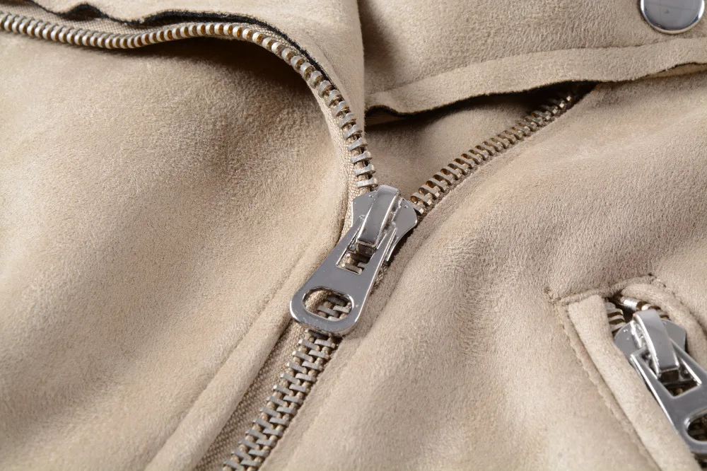 Unleash your inner rebel with the Arrial Suede Faux Leather Jackets. This stunning outerwear piece is the perfect fusion of edgy biker style and chic elegance. Whether you’re riding the open road or hitting the town, this versatile jacket adds a daring flair to any ensemble. Available in gray, pink, and beige, this women’s motorcycle jacket offers a runway-ready look for every style aficionado.