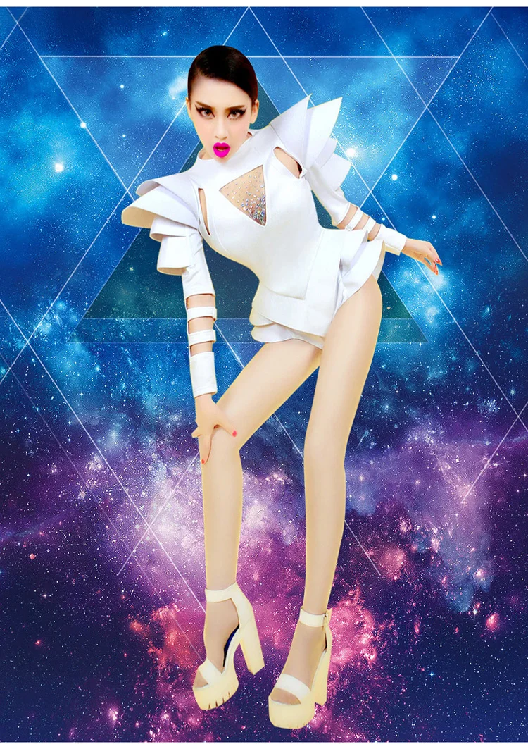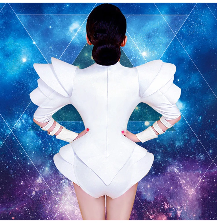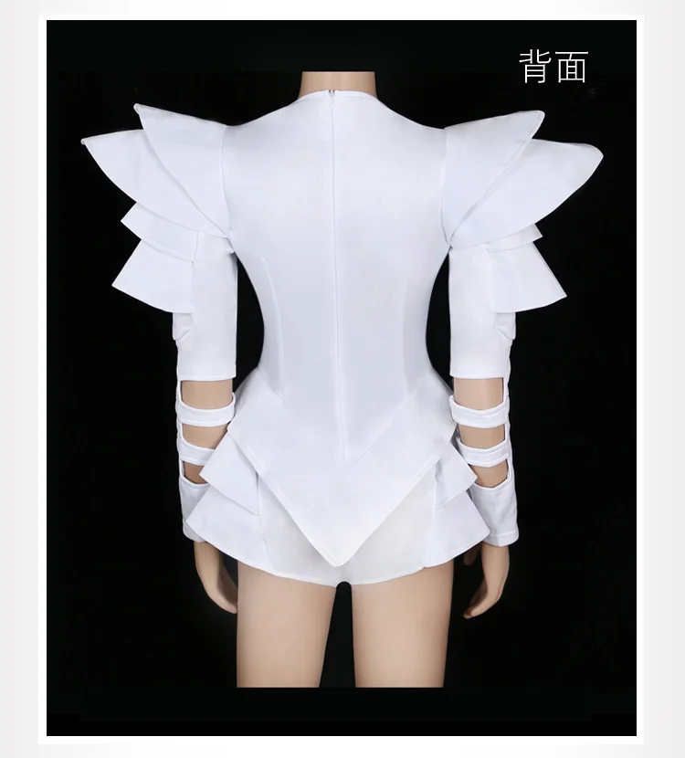 White One Piece Shoulder Costume for Ladies Nightclub Dance DJ Singer