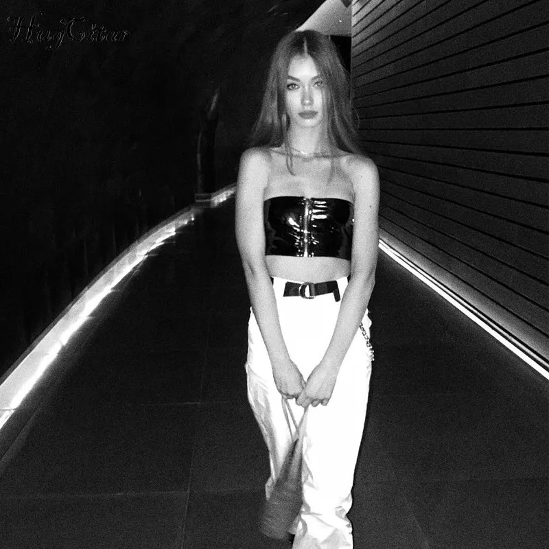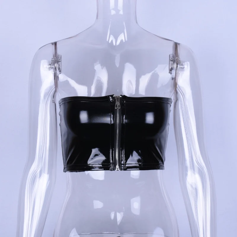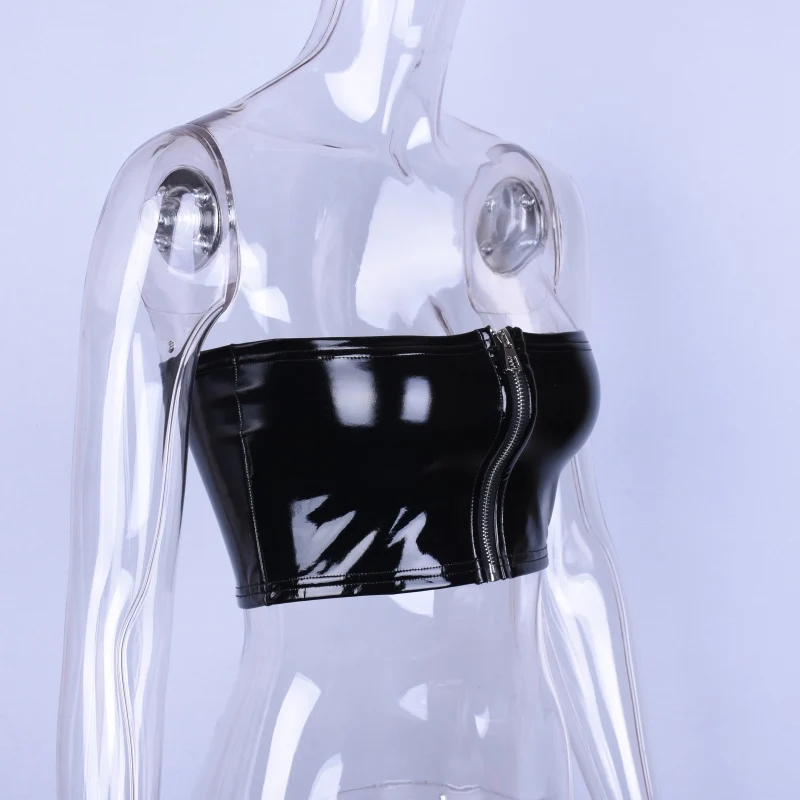 Step into the night with confidence with our Black Stretchy Pu Leather Zipper Tank Top Crop Club Wear Sexy. This leather crop top isn’t just a piece of clothing; it’s a statement. Designed for those who dare to be different, this piece is perfect for a night out or a wild party. Crafted with precision, it combines edgy fashion with comfort, ensuring you not only look fabulous but feel it too.