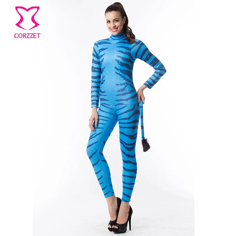 Unleash your inner Na’vi with our stunning Blue Zebra Na’vi Jumpsuit Costume. Inspired by the iconic characters of the Avatar universe, this cosplay outfit is perfect for those who want to transform into a mesmerizing blue alien for a night of sci-fi adventure, superhero roleplay, or fantasy carnival fun. Whether you’re attending a costume party or engaging in a cosplay convention, this Na’vi costume will capture attention and imagination.