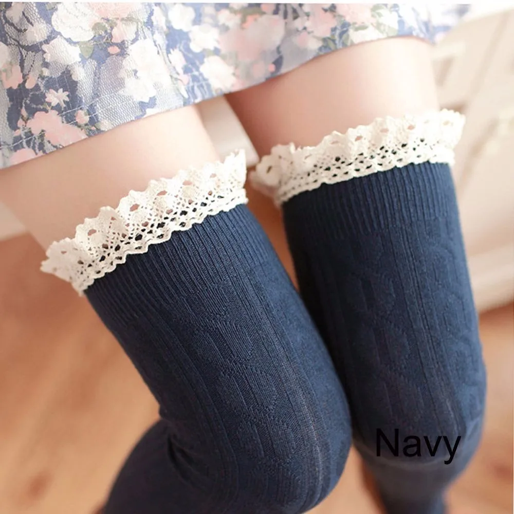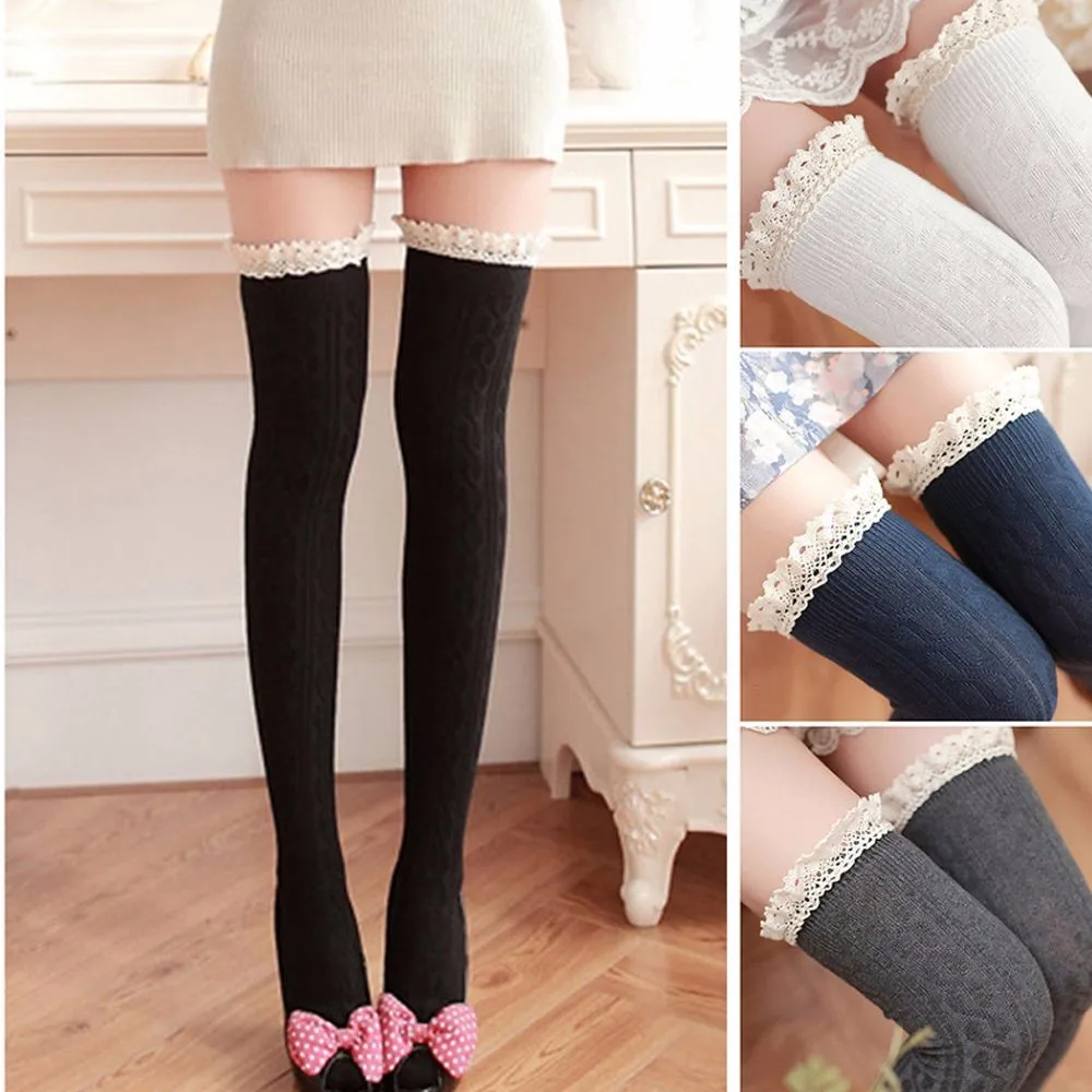 - One size thigh highs that fit most body types