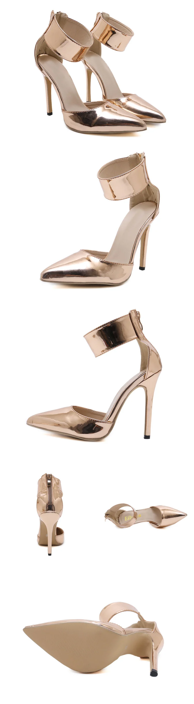 Our Gladiator Pumps feature a sleek zipper design combined with a pointed toe, offering a modern twist on the classic gladiator style. These fashionable party footwear pieces are perfect for transgender individuals, crossdressers, and anyone who appreciates chic style. Their champagne color adds a touch of sophistication, making them versatile for various occasions.