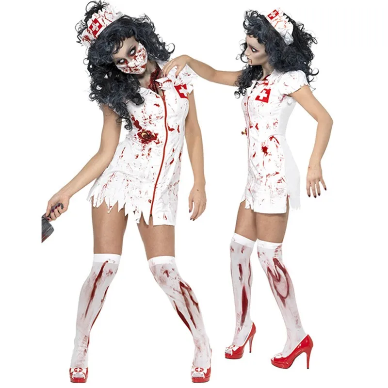 This blood-stained nurse dress isn’t just for Halloween. It’s an ideal choice for cosplay enthusiasts who want to explore the world of horror and transform themselves into a ghoulish character. Its attention to detail and creepy aesthetics make it a must-have for fans of zombie lore and culture.