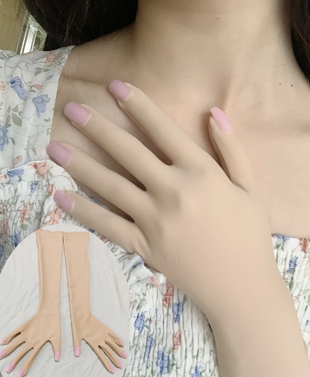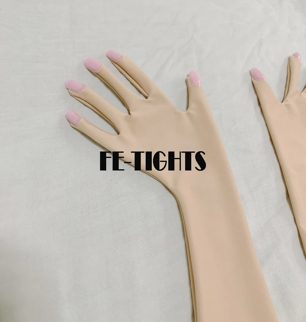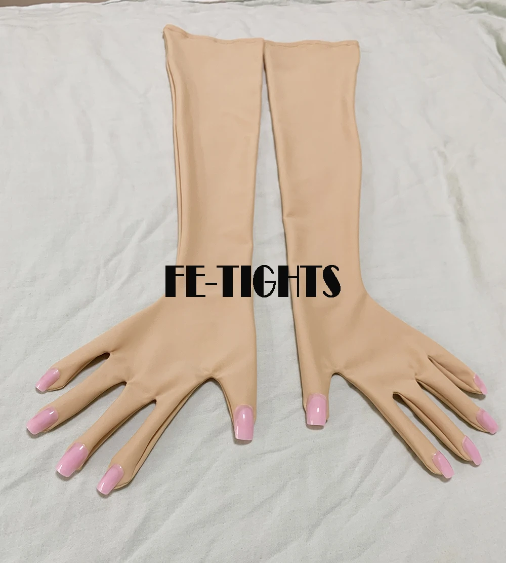Pink Flesh Spandex Zentai Nail Gloves Men’s Cosplay Kigurumi Long Gloves Custom Service
