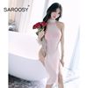 SAROOSY New Arrival Erotic Sexy Lingerie Hot for Women Candy Color Dress with Metal Ring Halter High Cut Open Crotch