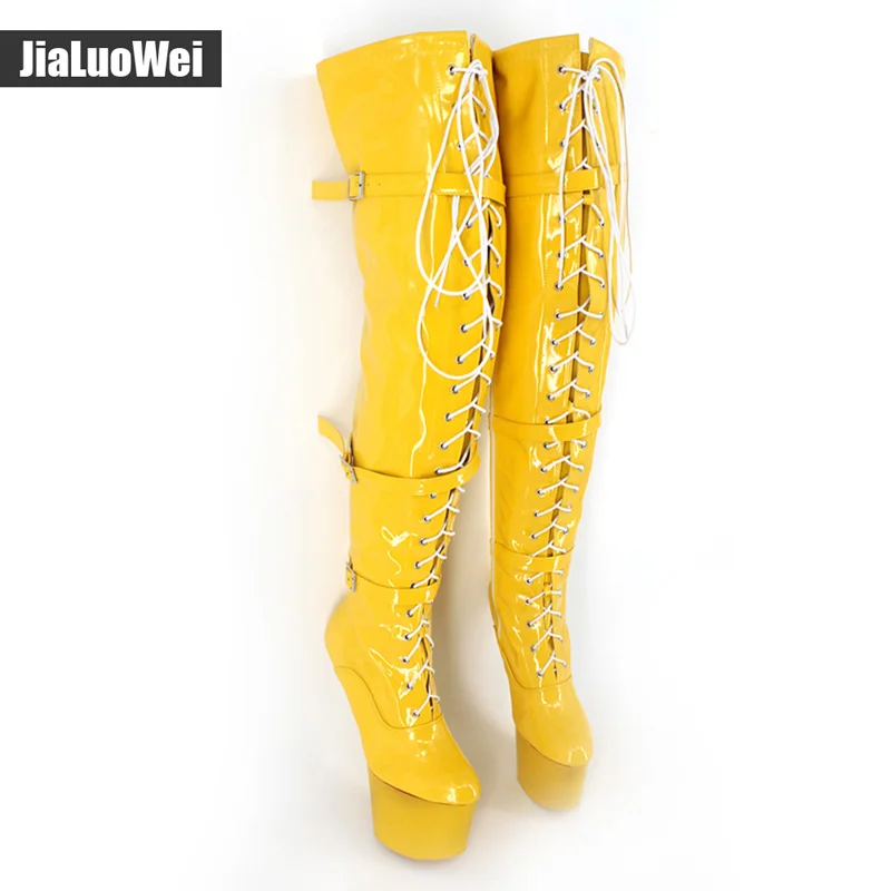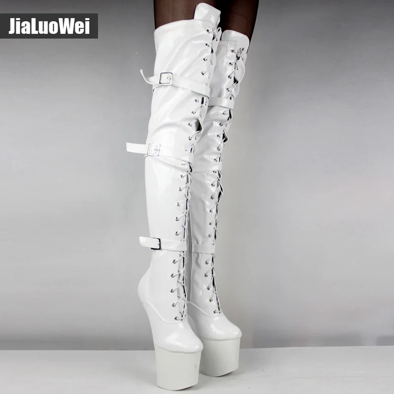 These heelless thigh high boots are not just about making a statement; they’re about comfort and versatility too. Whether you’re strutting down a runway or dancing the night away, these custom size heelless boots provide the support and stability you need, thanks to their innovative design.