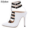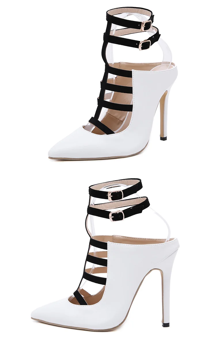 Discover the perfect blend of elegance and bold design with our Gladiator Pumps Buckle Strap Pointed Toe High Heels. These exquisite white wedding shoes offer a striking addition to any wardrobe, perfect for those who wish to make a statement. Whether you’re attending a wedding, a special event, or simply looking to add a touch of glamour to your outfit, these bridal high heel sandals deliver unmatched sophistication and allure.