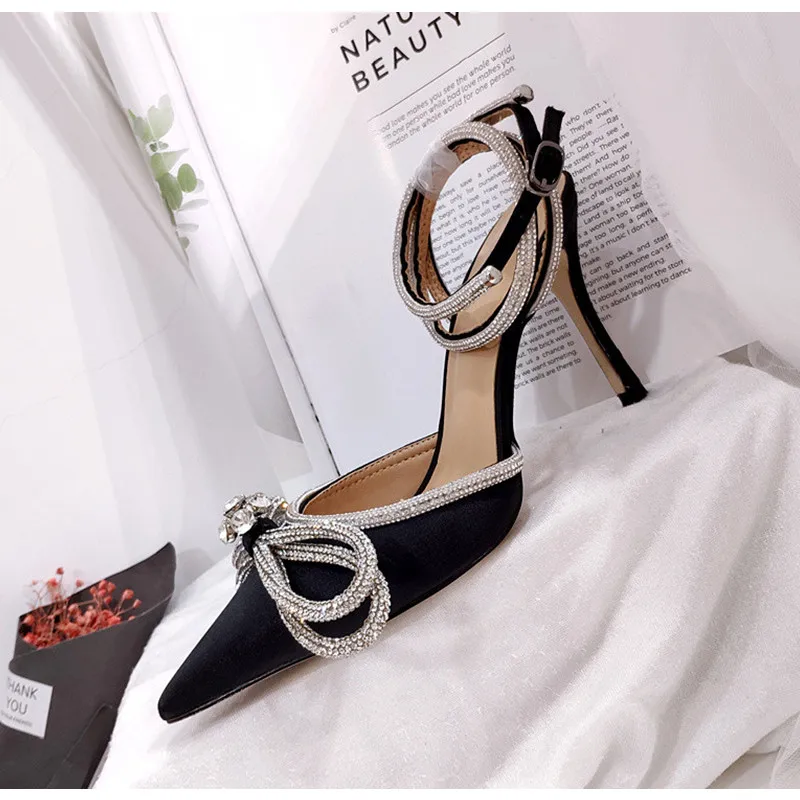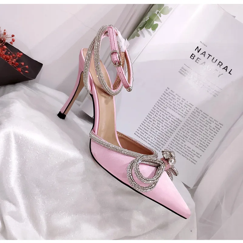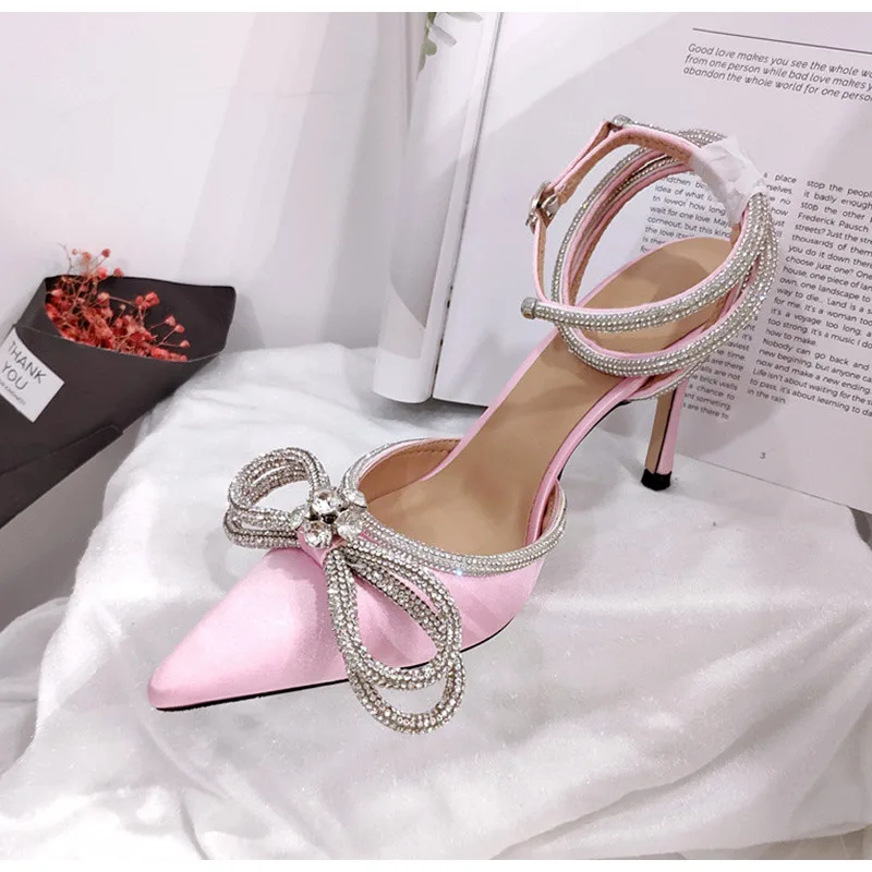 Our luxury women’s pumps are crafted from genuine leather, ensuring durability and a perfect fit. The satin finish is adorned with sparkling rhinestones, creating an eye-catching shimmer with every step. The crystal bowknot is the crowning jewel, offering an elegant touch to these evening event shoes. Embrace the combination of high fashion and comfort with a heel designed for both aesthetics and support.