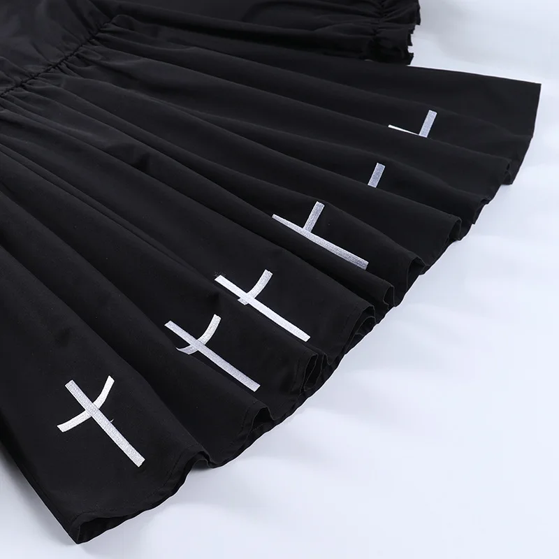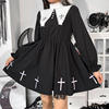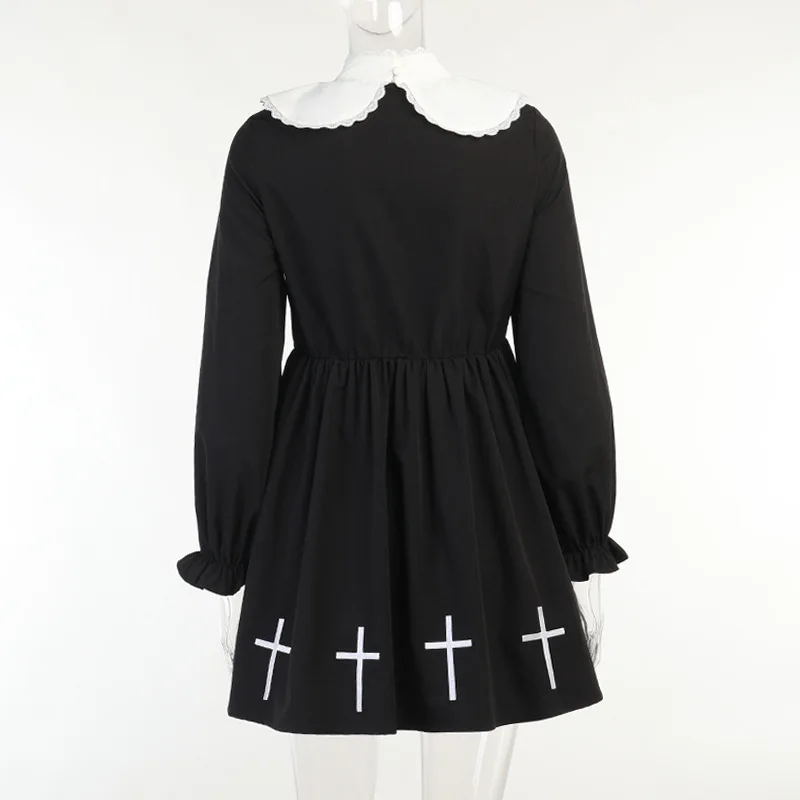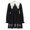 Step into the night with our Goth Black Dress Cross Print Preppy High Waist Mini Dress. This exquisite creation combines the elegance of a doll collar with the edgy aesthetics of punk, making it a staple in any fashion-forward wardrobe. Perfect for those who embrace the darker side of fashion, this Gothic dress is designed for both transgenders and anyone who dares to stand out.