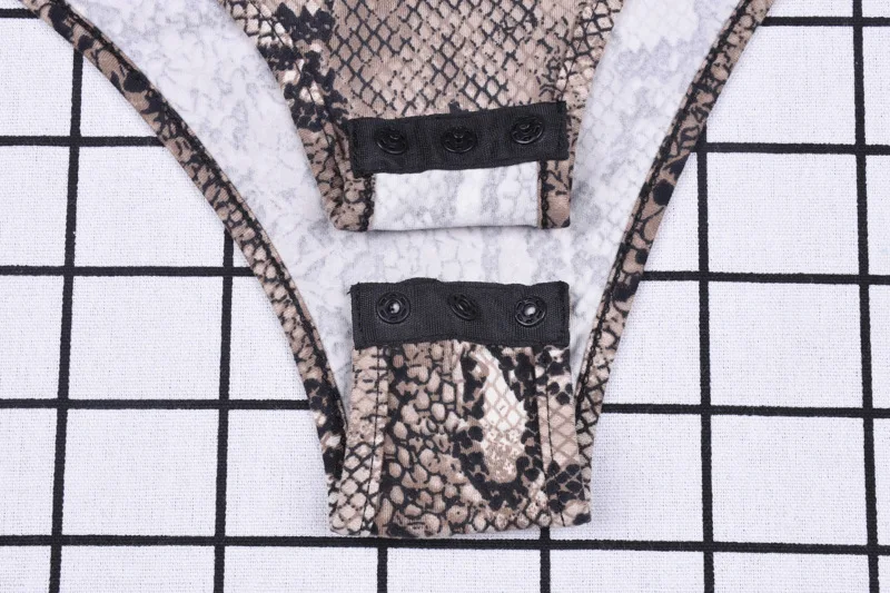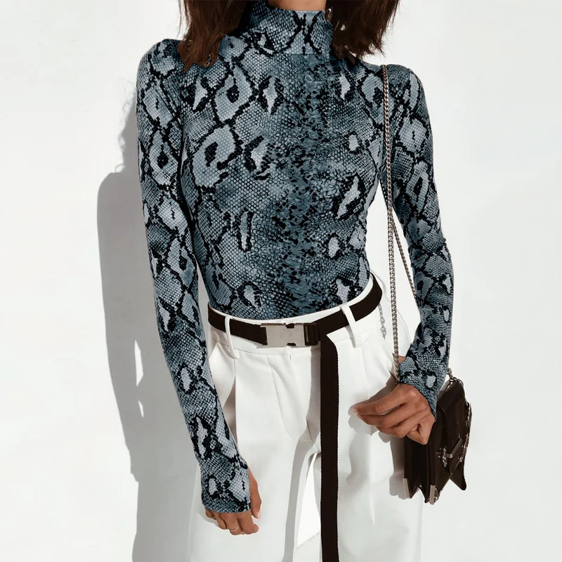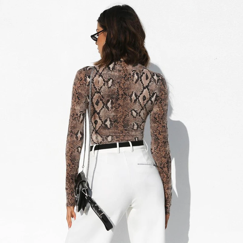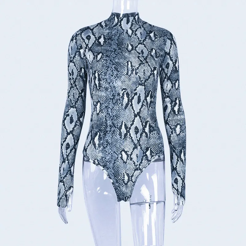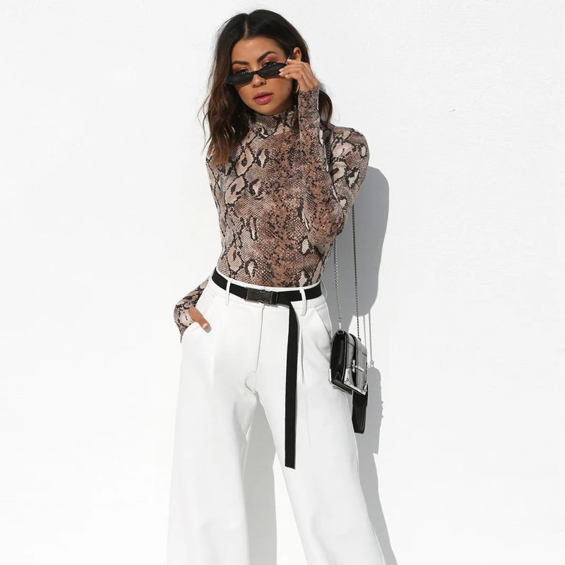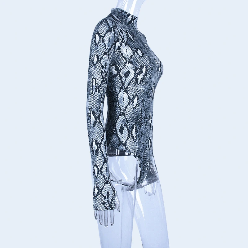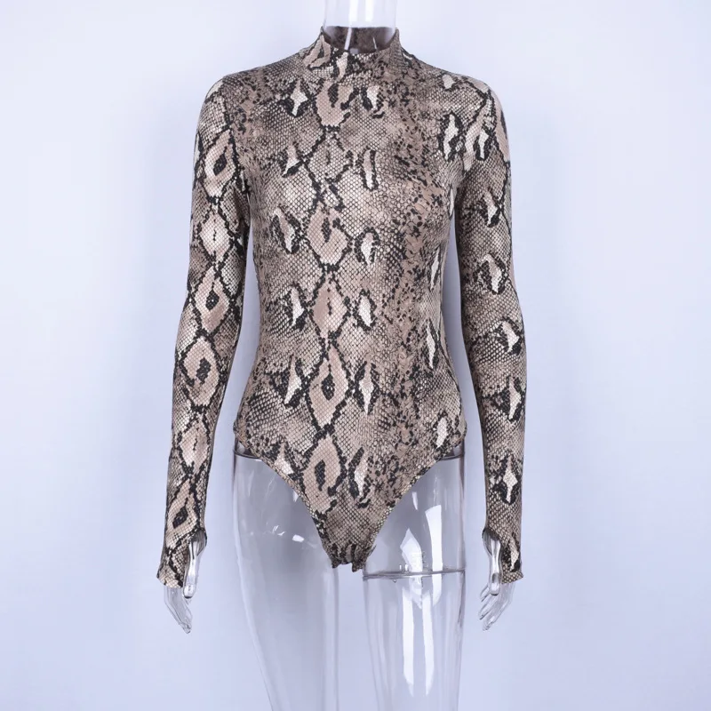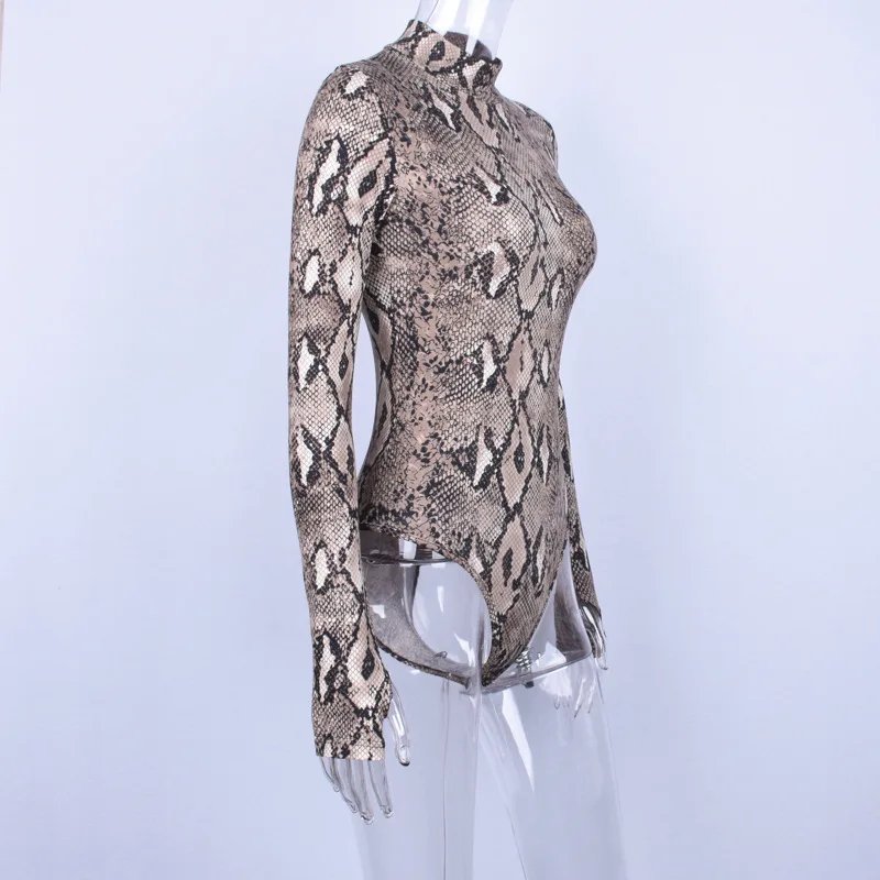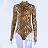 Snakeskin Bodycon Bodysuit High Neck Long Sleeve Sexy Women’s Fashion