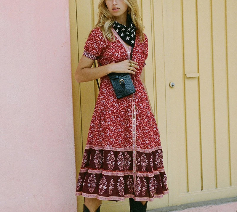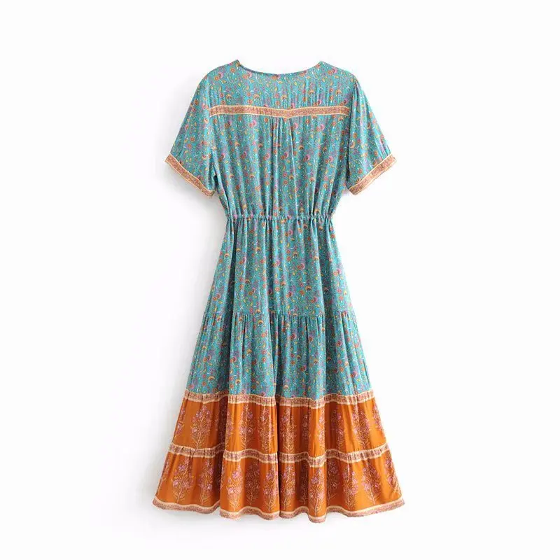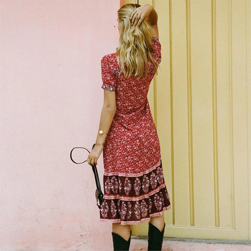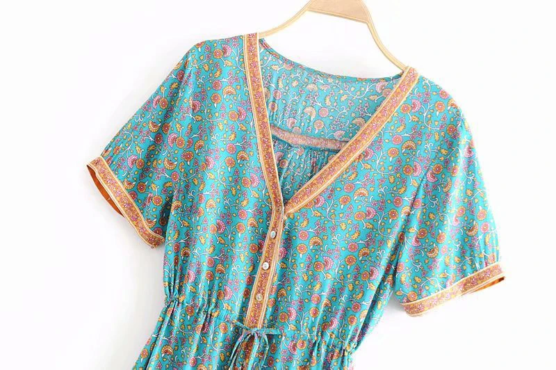 Whether you’re heading to a summer festival or enjoying a casual day at the beach, this Boho Dress is your go-to choice for effortless fashion. Its sexy V-neck and short sleeves provide a flattering silhouette for any body type, while the vibrant floral print adds a touch of whimsy and romance.
