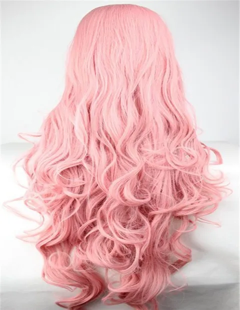 Pink Wavy Curly Heat Resistant Synthetic Wig Long Kinky Style
