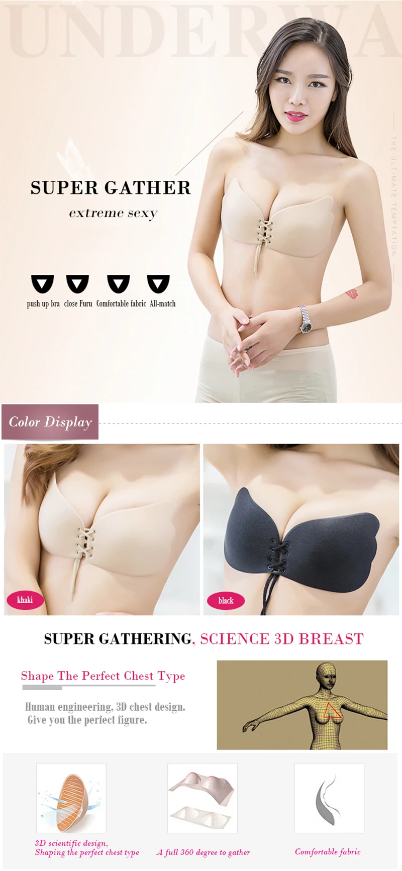 Discover the secret to flawless fashion with our Magic Bras Strapless Invisible Push Up Fly gather bra. This self-adhesive silicone bra is designed to provide the perfect lift and support without the need for straps. Tailored for those special occasions, it’s the ultimate solution for your backless and strapless evening wear.