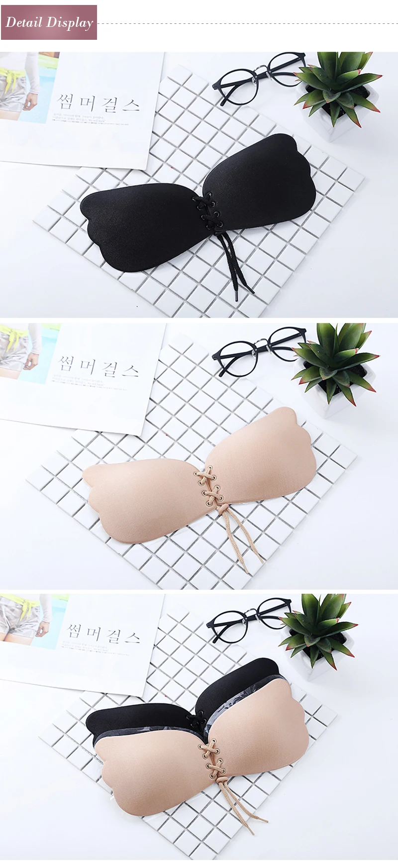 - Strong yet gentle silicone sticky bra adhesive