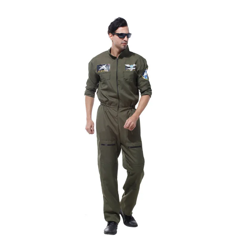 Mens Pilot Aviator Top Gun Paratrooper Flight Suit Halloween Policeman Special Forces Costumes Easter Carnival Party Jumpsuit