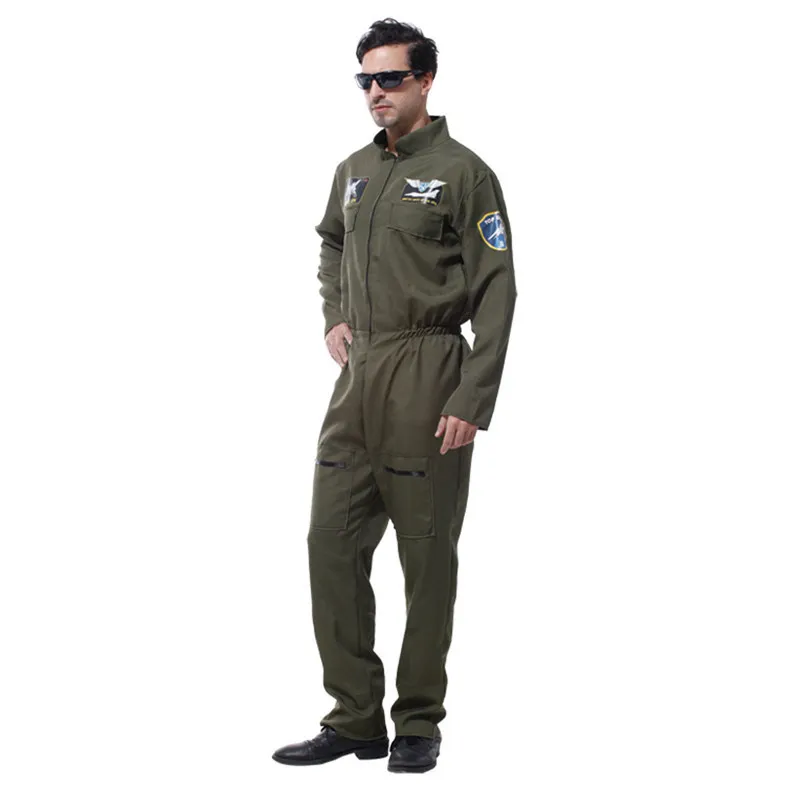 Mens Pilot Aviator Flight Suit Costume Special Forces Jumpsuit for Easter Carnival