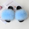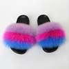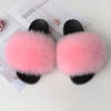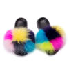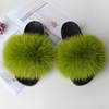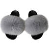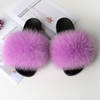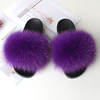 - Plush fox fur slides add a touch of elegance to your casual attire.