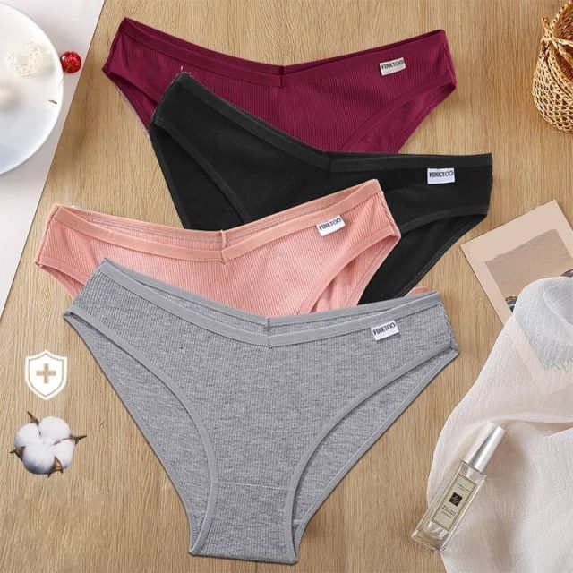 Women’s Embroidery Lingerie G-string Sexy Low Rise Cotton Thongs 2/3PCS V-Waist Underwear Panties
