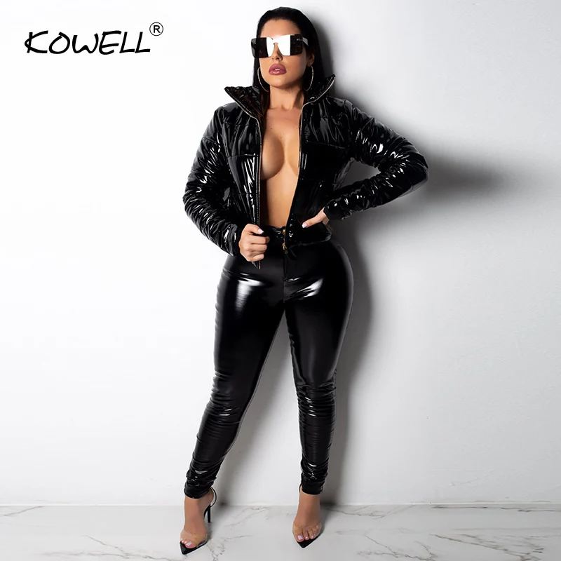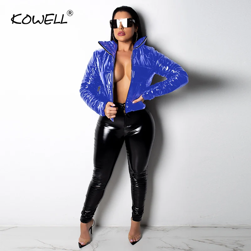 Hot Sale PU Leather Slim Winter Sexy Women Coats and Jackets Long Sleeve Stand Collar Thicker Jacket Women Casual Crop Top Women