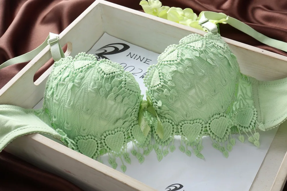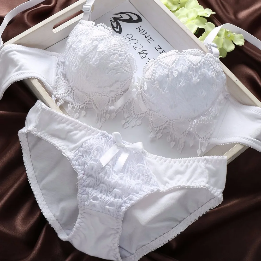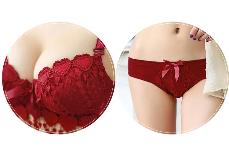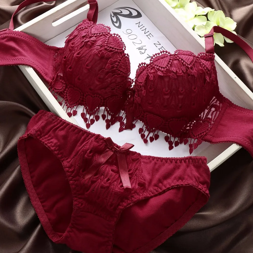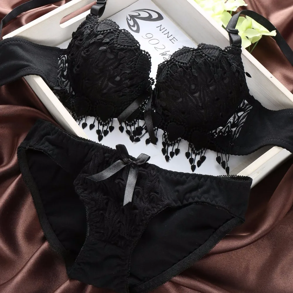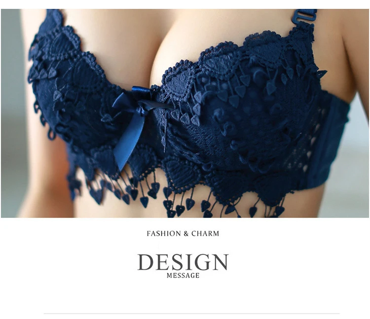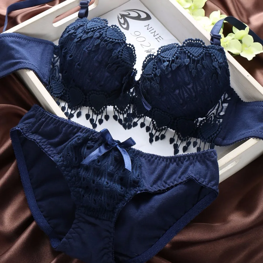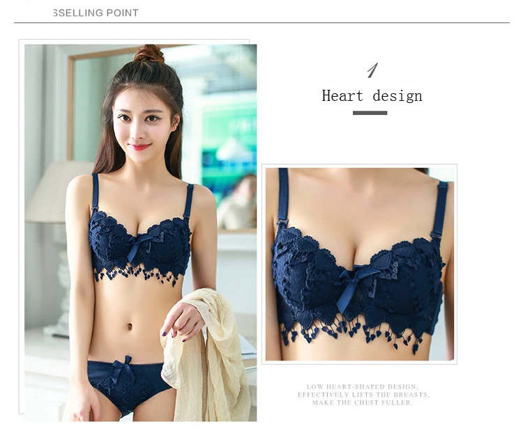 Push Up Floral Embroidery Bra Set Adjusted Deep V Underwire Thick  Bra Panties Padded sexy Lingerie Bra and Briefs Set for women