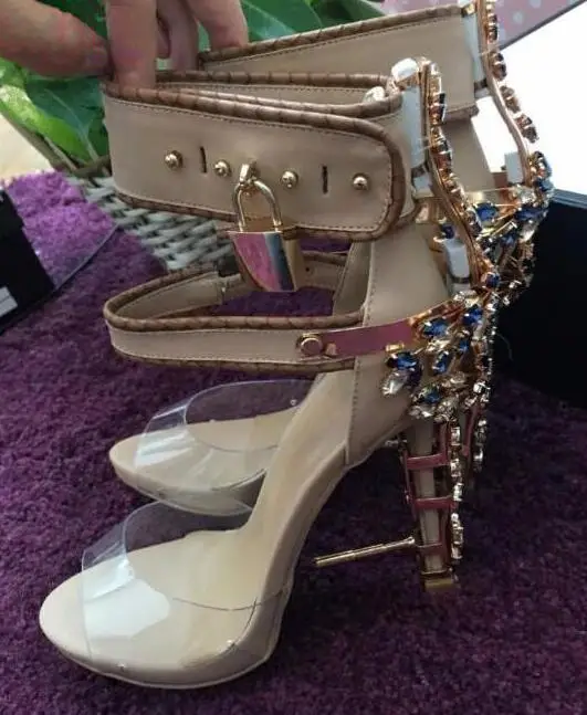 Discover a new level of sophistication with our Rhinestone Cover Nail Heel PVC Sandals. These rhinestone high heels are designed for those who wish to make a captivating entrance at any event. Whether you’re dressing for a formal event or an evening out, these crystal embellished heels will surely turn heads.