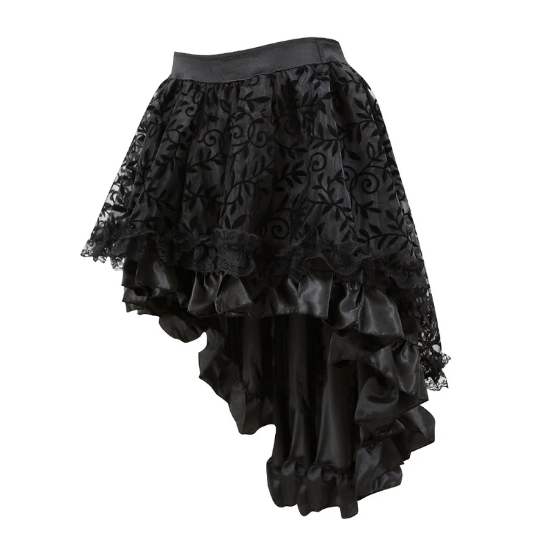 Step into the enigmatic world of Victorian steampunk fashion with our S-6xl Victorian Asymmetrical Ruffled Satin & Lace Trim Gothic Skirts Corset Dress. This stunning piece combines the timeless charm of vintage aesthetics with contemporary flair, making it an essential addition to any cosplay wardrobe. Perfect for transgender and cross-dressing fashion enthusiasts, this skirt offers an alluring silhouette that celebrates individuality and creativity.