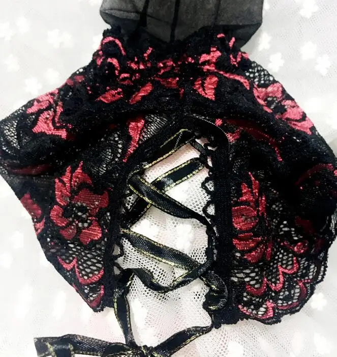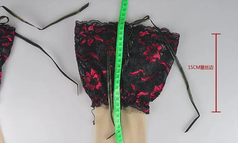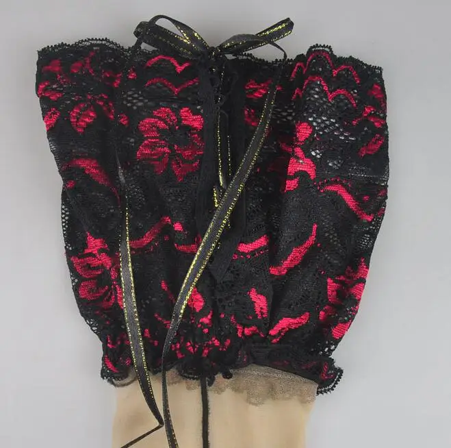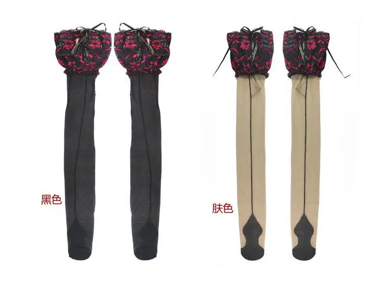 Punk Maid Sexy Cuban Heel Back Seam Stockings Wide Lace UP Hold Up Silicone Floral Top Thigh High Cross Bandage Stockings