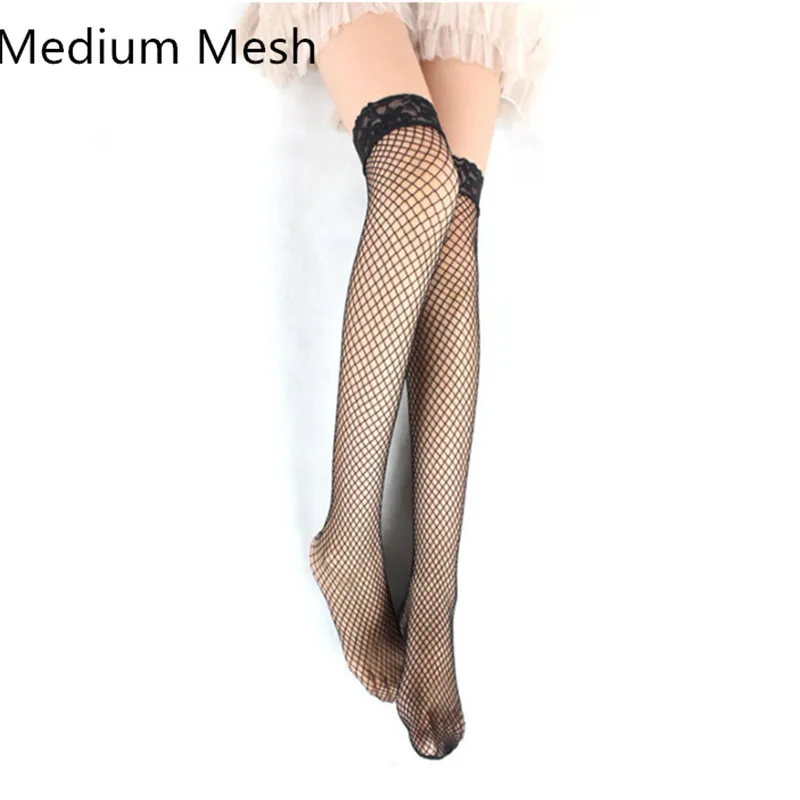 Women Sexy Lace Top Stay Up Thigh High Stockings Hosiery Hollow Out Mesh Nets Fishnet Stockings Pantyhose S/M/L Holes 5 Colors
