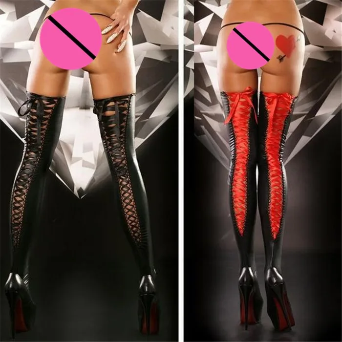 Elevate Your Style with Sexy Long Lace Faux Leather Latex Banded Socks