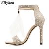 Experience the allure and sophistication of our Sexy Sandals Pumps Rhinestone Zipper Feather High Heel Apricot Wedding Shoes. These exquisite sandals are designed to elevate your style for any special occasion, be it a wedding, evening party, or glamorous event. With their stunning rhinestone embellishments and delicate feather accents, these sandals are the epitome of elegance and charm.
