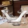 Women Shoes High Quality Female Model T Station Catwalk Sexy Crystal Transparent Shoes 15CM High Heels Waterproof Head Sandals