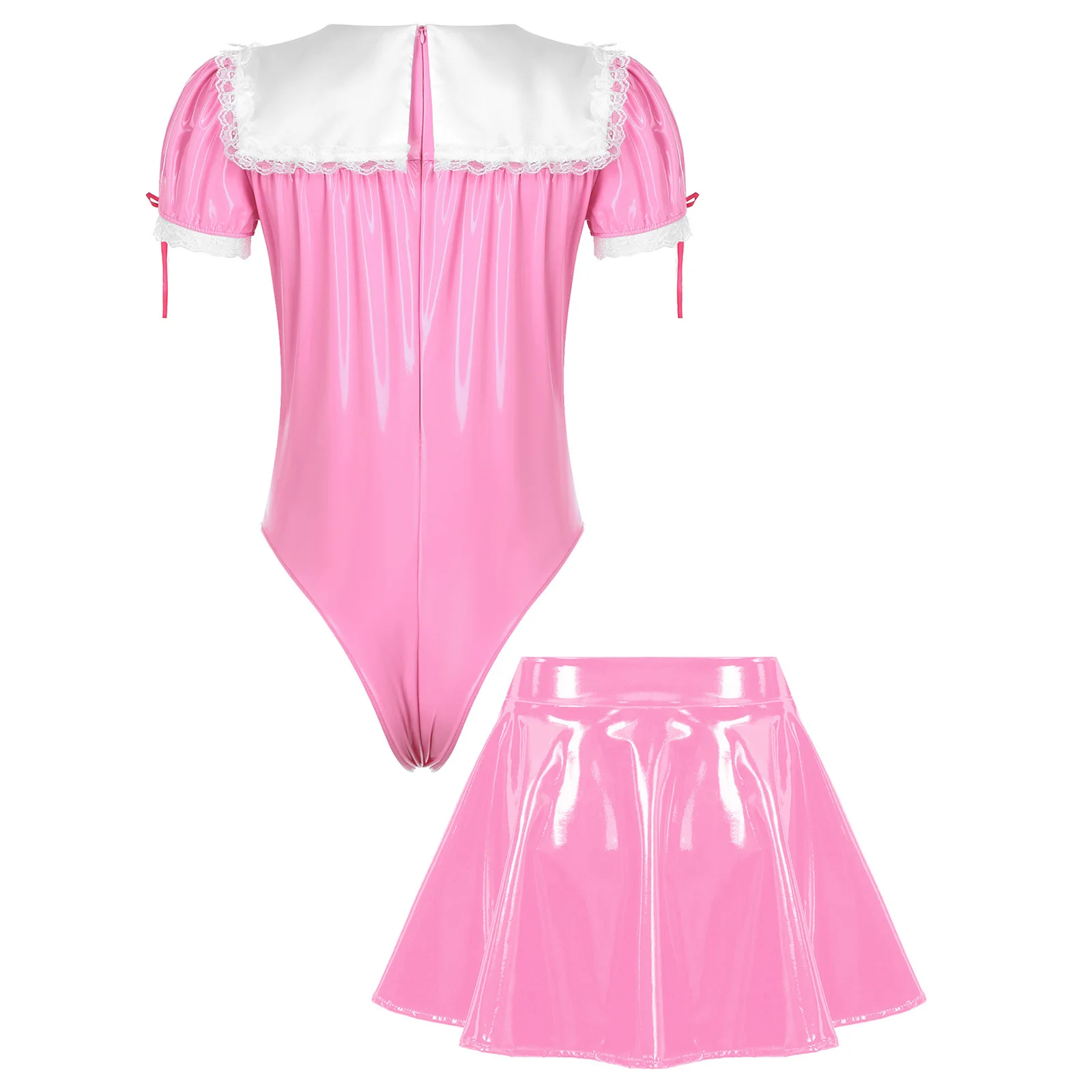Step into a world of fantasy and allure with our Mens Sissy Crossdresser Maid Cosplay Costume. Designed for those who dare to embrace their inner femininity, this role-playing maid outfit caters to crossdressers, transgenders, and anyone eager to explore diverse expressions. Crafted from sleek patent leather and adorned with delicate lace trim, this ensemble promises to be a show-stopper at any cosplay event, Halloween party, or private role-play session.