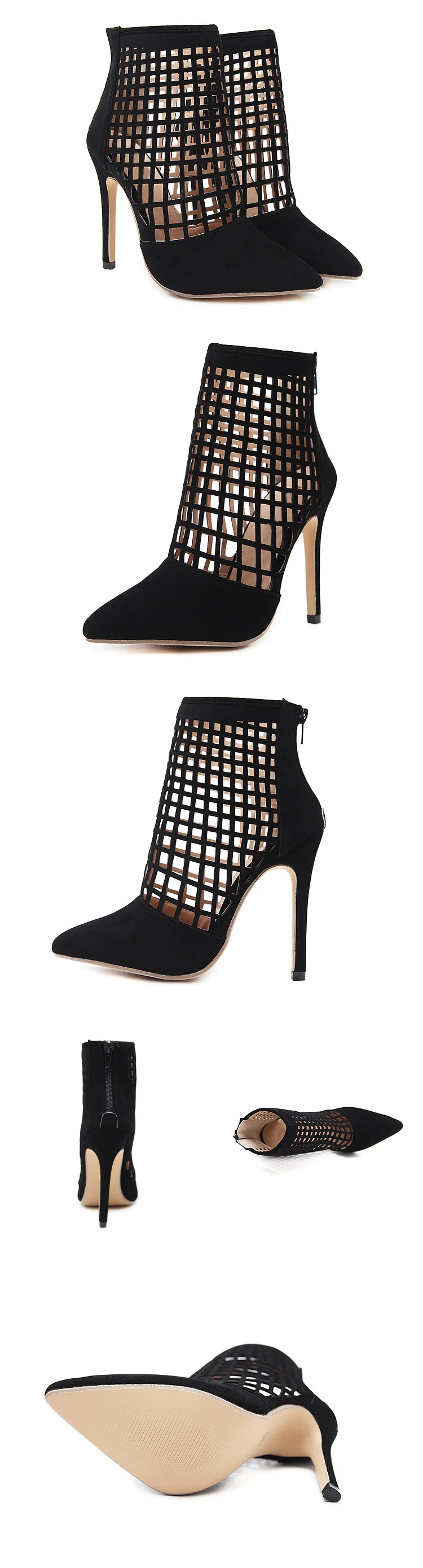 Pointed Toe Ankle Boots Sexy Zipper High Heel Hollow Out Chelsea Shoes