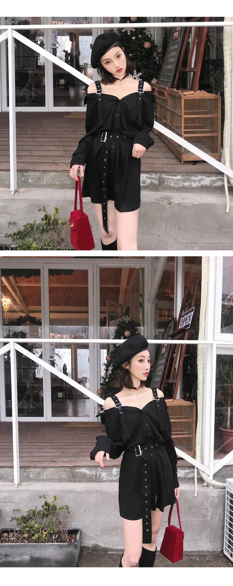 - Distinctive Design: The off-shoulder cut and black suspenders create a captivating look that screams confidence.