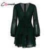 Whether you’re headed to a pink party or an intimate gathering, this dress stands out as a must-have short evening dress. The combination of a sensual V-neckline and a playful ruffle sleeve enhances your femininity while providing a comfortable fit that’s perfect for dancing the night away.