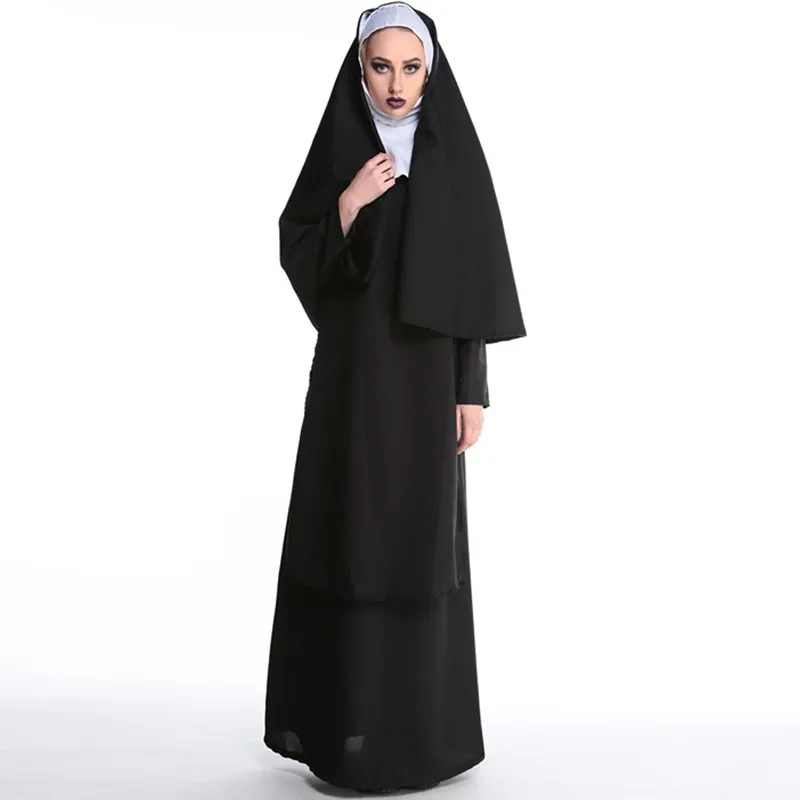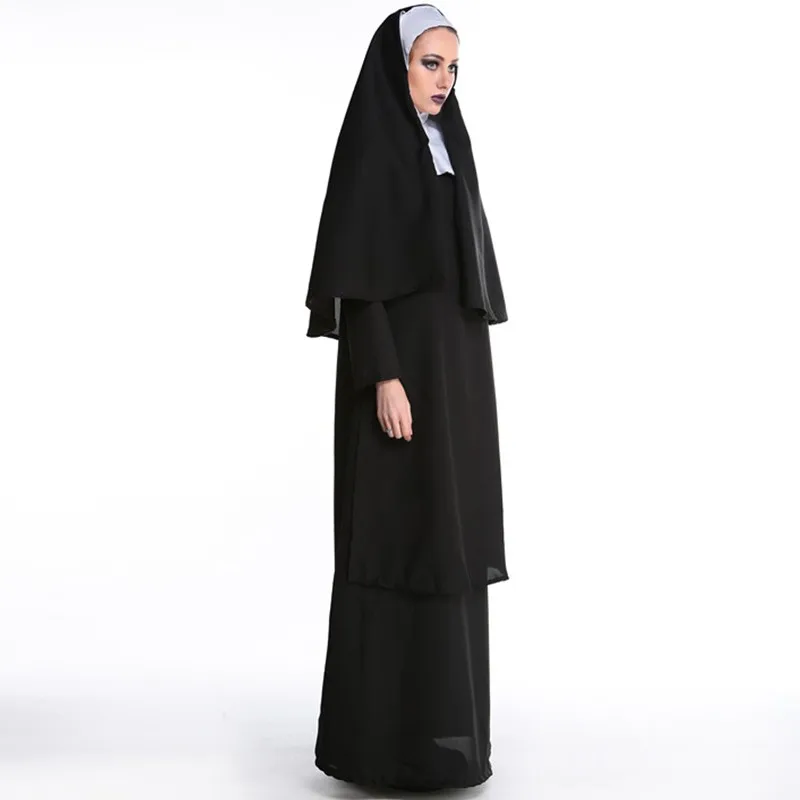 2017 Wholesale Virgin Mary Nuns Costumes for Women Sexy Long Black Nuns Costume Arabic Religion Monk Ghost Uniform Halloween