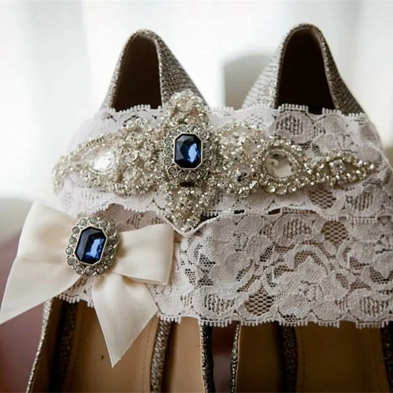 This wedding garter set makes a thoughtful gift for brides, offering a delightful surprise that can be cherished as a keepsake for years to come. Whether you’re wearing it as a bride or gifting it to someone special, this lace wedding accessory is bound to make a significant impact. The combination of blue crystal embellishments and a ribbon bow adds a personal touch, symbolizing love and purity in a sophisticated manner. Make your wedding day unforgettable with this elegant addition to your bridal attire.