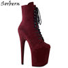 Discover a new level of confidence with our Wine Red Ankle Boots featuring Extreme High Heels. These booties are designed for those who love to make a bold statement while embracing their devious shoe fetish. Perfect for any occasion that demands attention, they are especially suited for pole dancing, clubbing, or any unique event where standing out is a must.