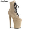 Crafted with precision, these sexy high heel booties offer both style and substance. Each pair is meticulously designed to ensure comfort while showcasing an exotic dance footwear appeal. With an impressive 8-inch heel, these boots promise to elevate your look and your stature.