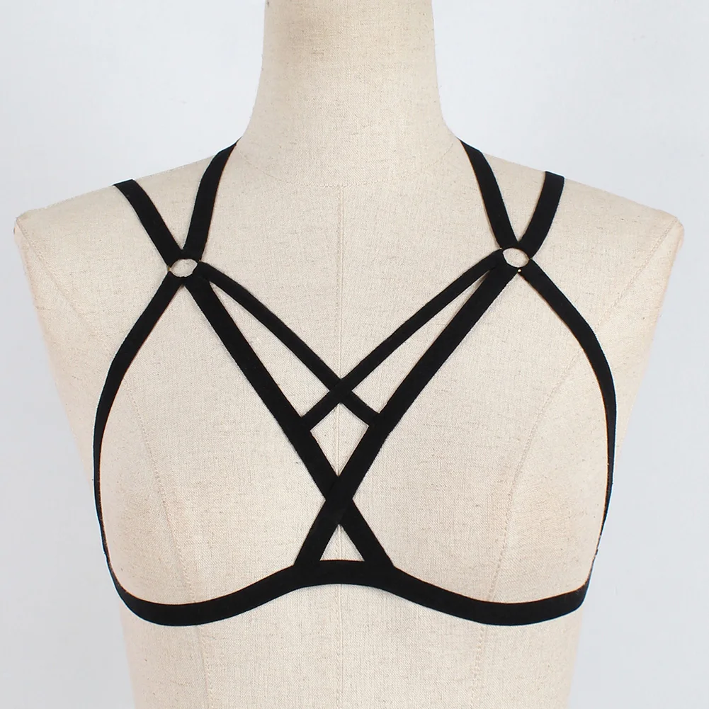 Women Cage Top Bralette Halter Neck Adjustable Elastic Cupless Brassiere Hollow Out Bandage Strappy Bra Body Chain Black Harness