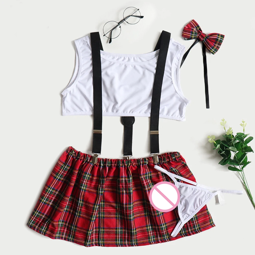 Unleash your playful side with our Women Sexy Lingerie Cosplay Student Uniform Mini Skirt and G-thong Set. Designed to captivate and excite, this erotic underwear set is perfect for those looking to add a touch of fantasy to their intimate moments. Whether you’re new to women’s cosplay lingerie or an experienced crossdresser seeking something fresh, this sexy nightwear outfit brings your fantasies to life with its alluring design and comfortable fit.