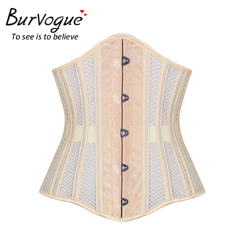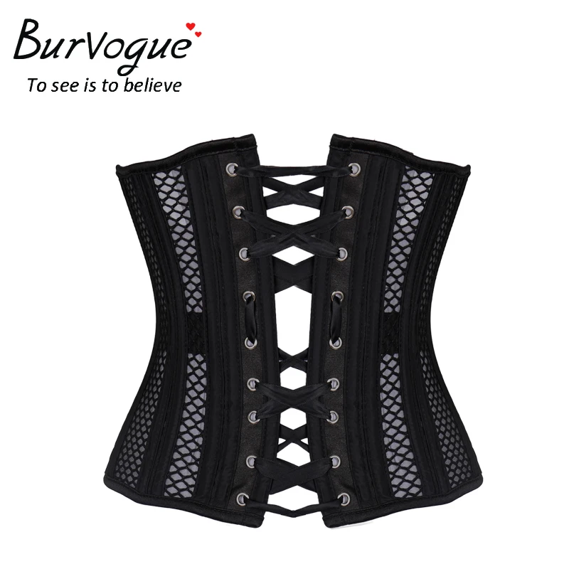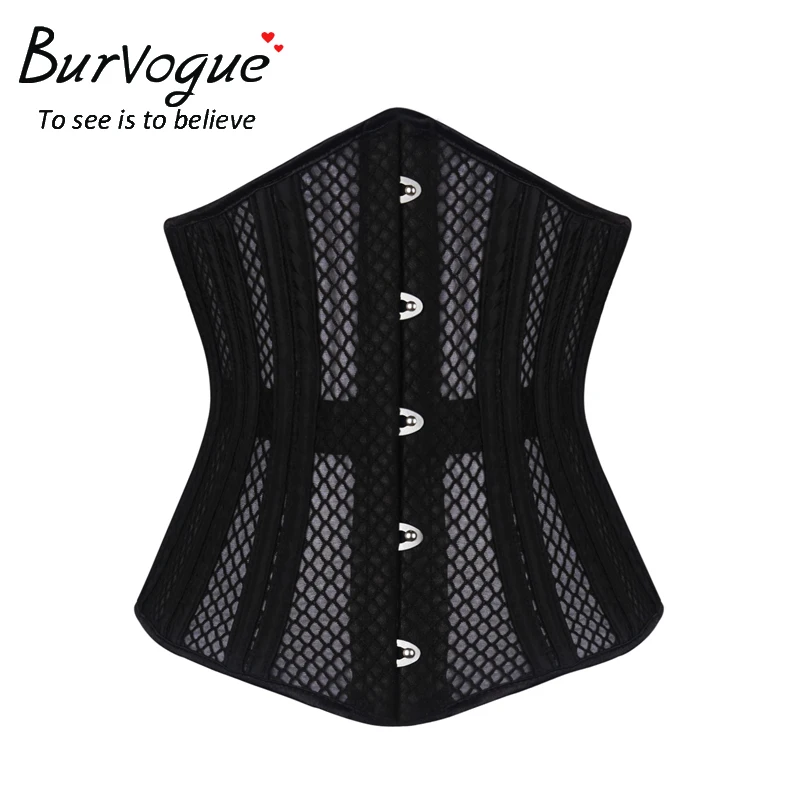 Burvogue New Women's Double Steel Boned Corset Mesh Breathable Waist Control Underbust Sexy Corset & Bustiers for Weight Loss