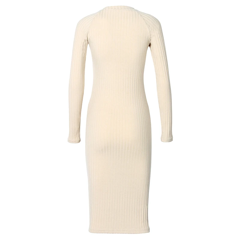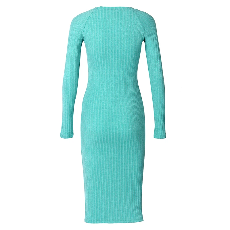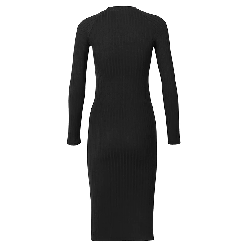 Crafted with precision, this bodycon dress hugs your figure flawlessly, enhancing your natural shape while ensuring comfort. The midi length and long sleeves provide a touch of sophistication, making it suitable for any formal or semi-formal occasion. With its sleek and timeless design, this cocktail party dress is a staple piece that belongs in every fashion-forward wardrobe.