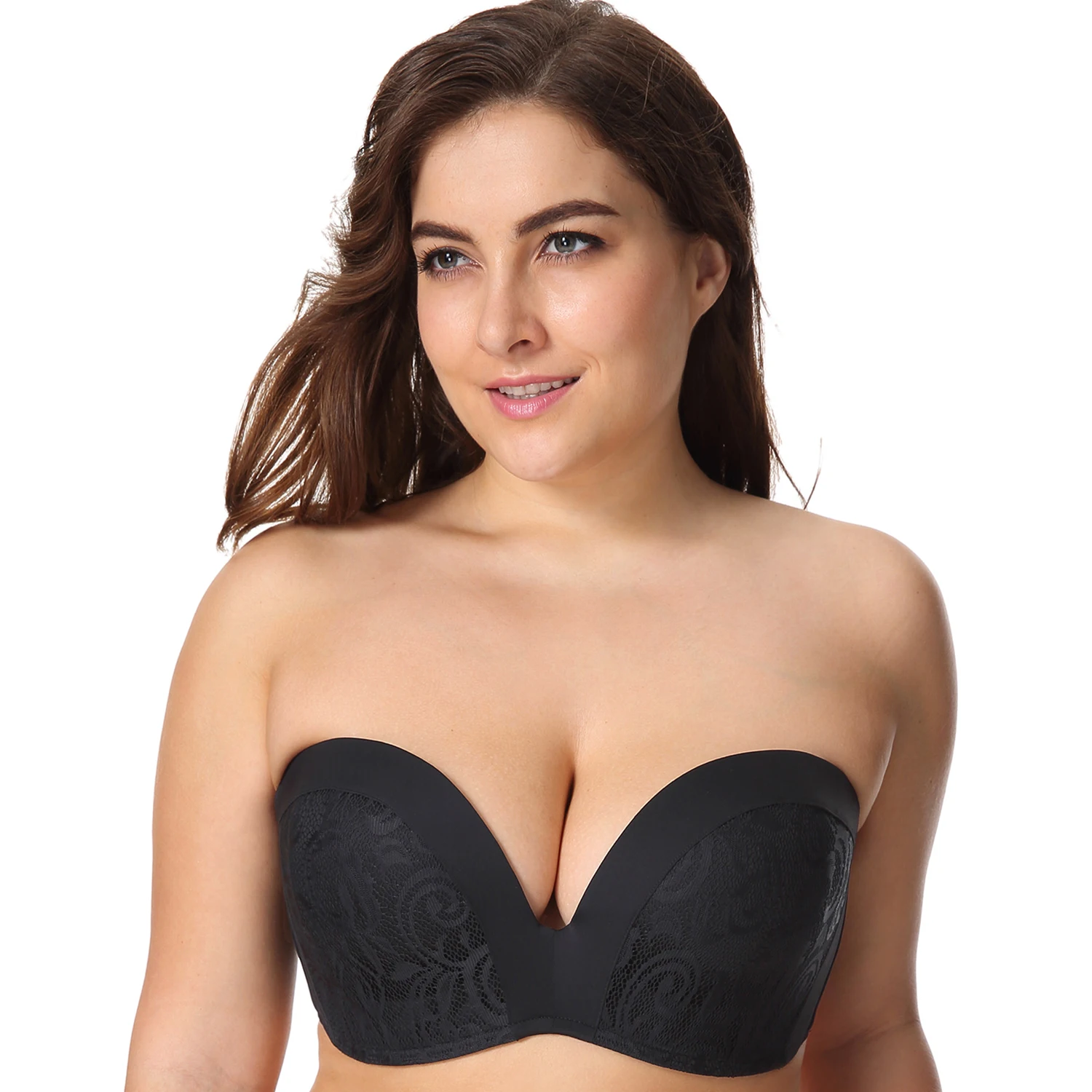 Lace Strapless Bra Women’s Slightly Padded Push Up Great Support